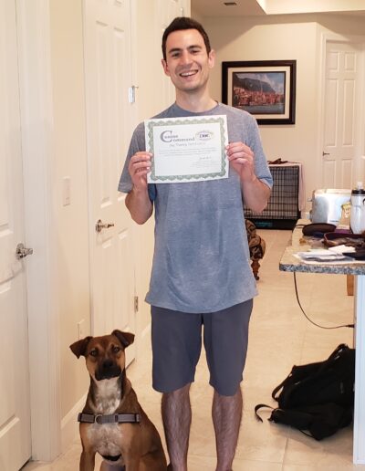 Joe was great. Extremely knowledgeable and knows all of tips and tricks. He is very organized and prepared. He brings all of the tools you need to train your dog and available for purchase which makes it convenient. He also provided a binder of articles for future reference. It is easy to see that he is very passionate about dog training. Both of our dog’s behavior improved and he helped reduce a daily annoying behavior of one of our dogs.