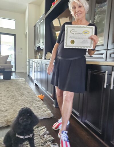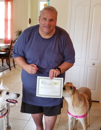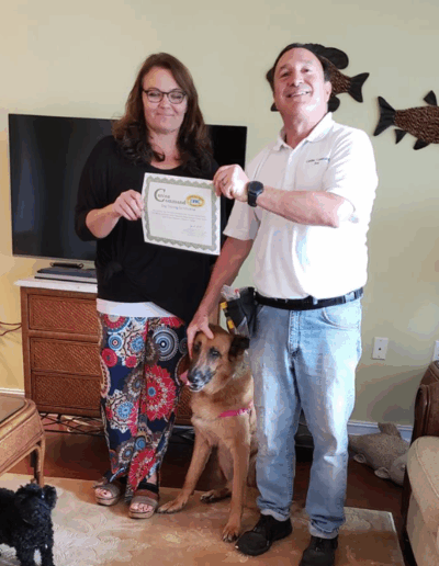 I can’t believe the difference in my dogs. A workman came to the door and into the house-I said QUIET-and they both stopped and sat down. Farley didn’t bother the workman at all! He was amazed since he had been here before and Farley was very aggressive. Thank you. You have made our life with Farley so much better-and he is happier dog. The tools you have given me are being carried over to walking manners and I am just thrilled with their progress. I can’t thank you enough for all you have already done for us. With many thanks!